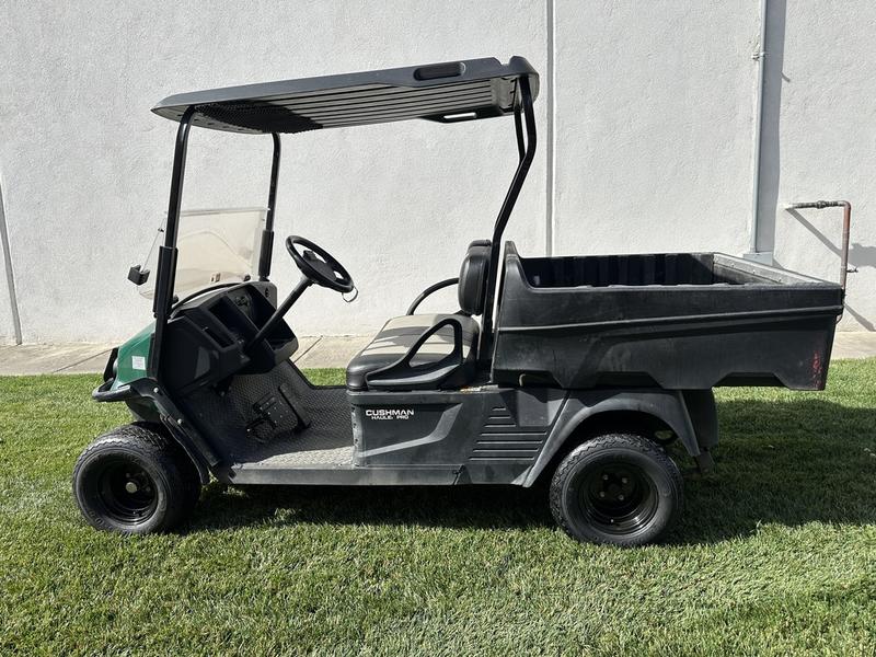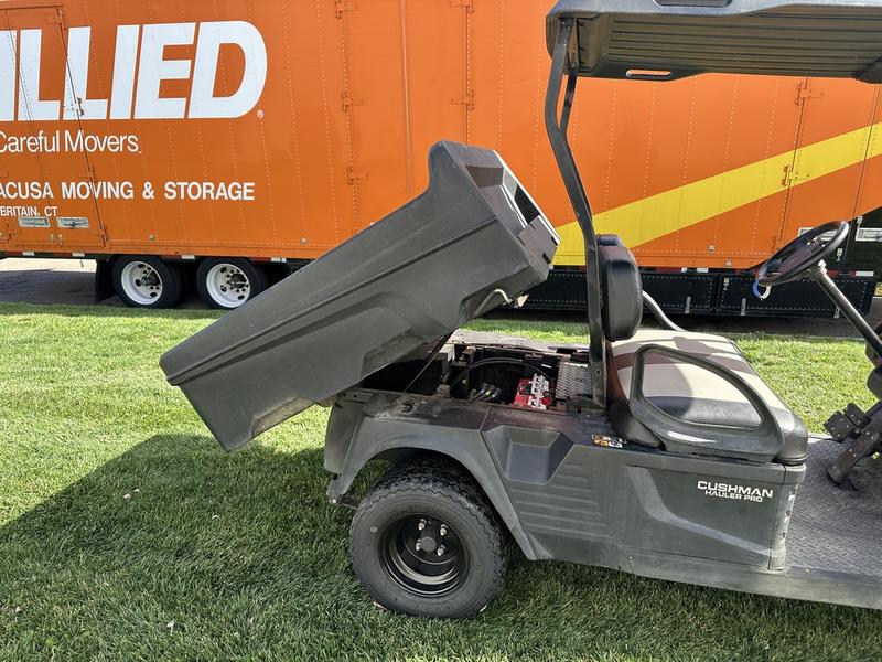 2019 CUSHMAN HAULER PRO 72 VOLT. NEW 72 VOLT LEAD ACID BATTERY SYSTEM, NEW WHEELS AND TIRES, NEW SEATS, STANDARD DASH, TURN SIGNAL KIT WITH HEADLIGHTS AND BRAKE LIGHTS, CARGO BED WITH MANUAL DUMPING FEATURE, SPLIT FOLDING CLEAR WINDSHIELD, 52" BLACK TOP.