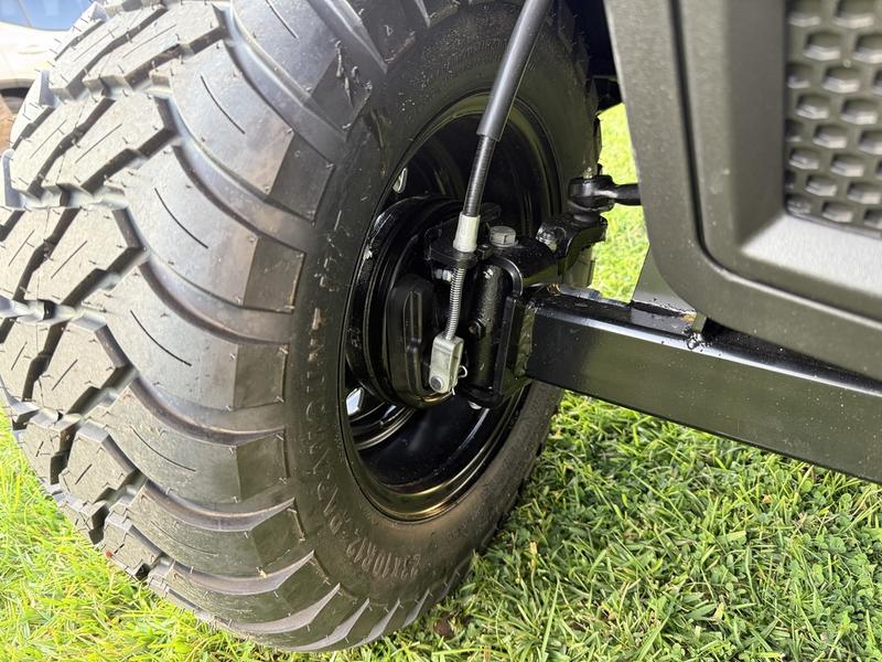 12" BLACK STEELY RIMS W/ 23" A/T TIRES