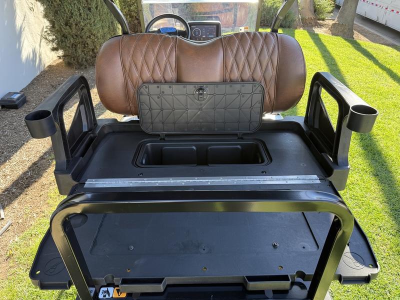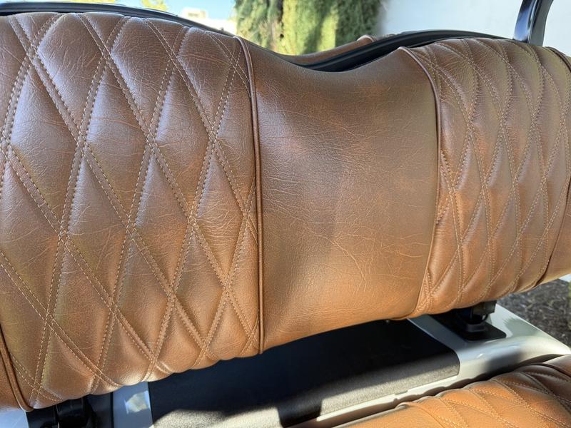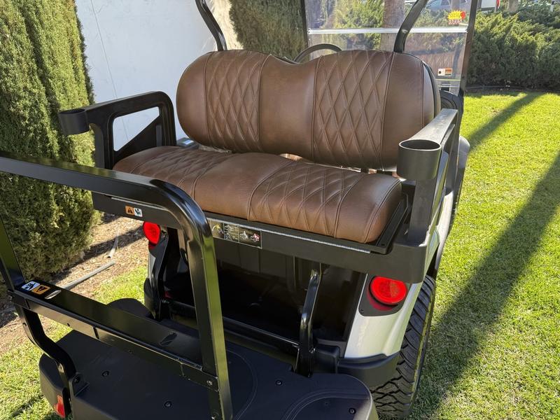 - Now introducing E-Z-GO's all-new luxury seating. The automotive-style seating, with flip down armrests and sculpted foam seats, introduce a new level of elegance to every ride.