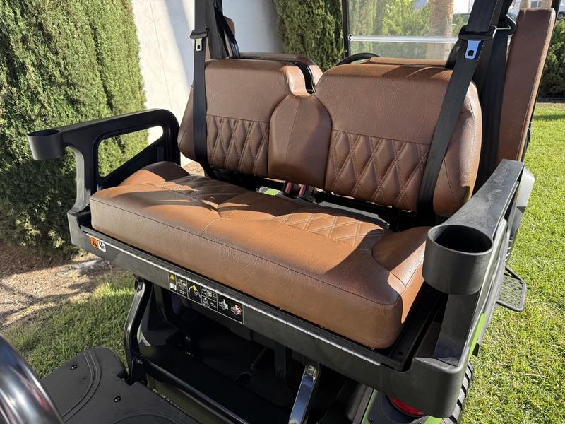 - Now introducing E-Z-GO's all-new luxury seating. The automotive-style seating, with flip down armrests and sculpted foam seats, introduce a new level of elegance to every ride.