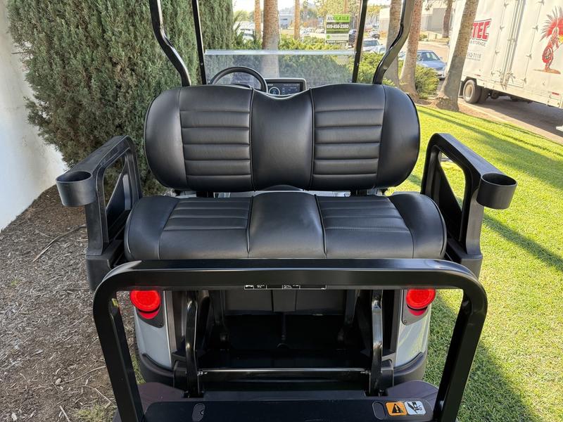 - Now introducing E-Z-GO's all-new luxury seating. The automotive-style seating, with flip down armrests and sculpted foam seats, introduce a new level of elegance to every ride.